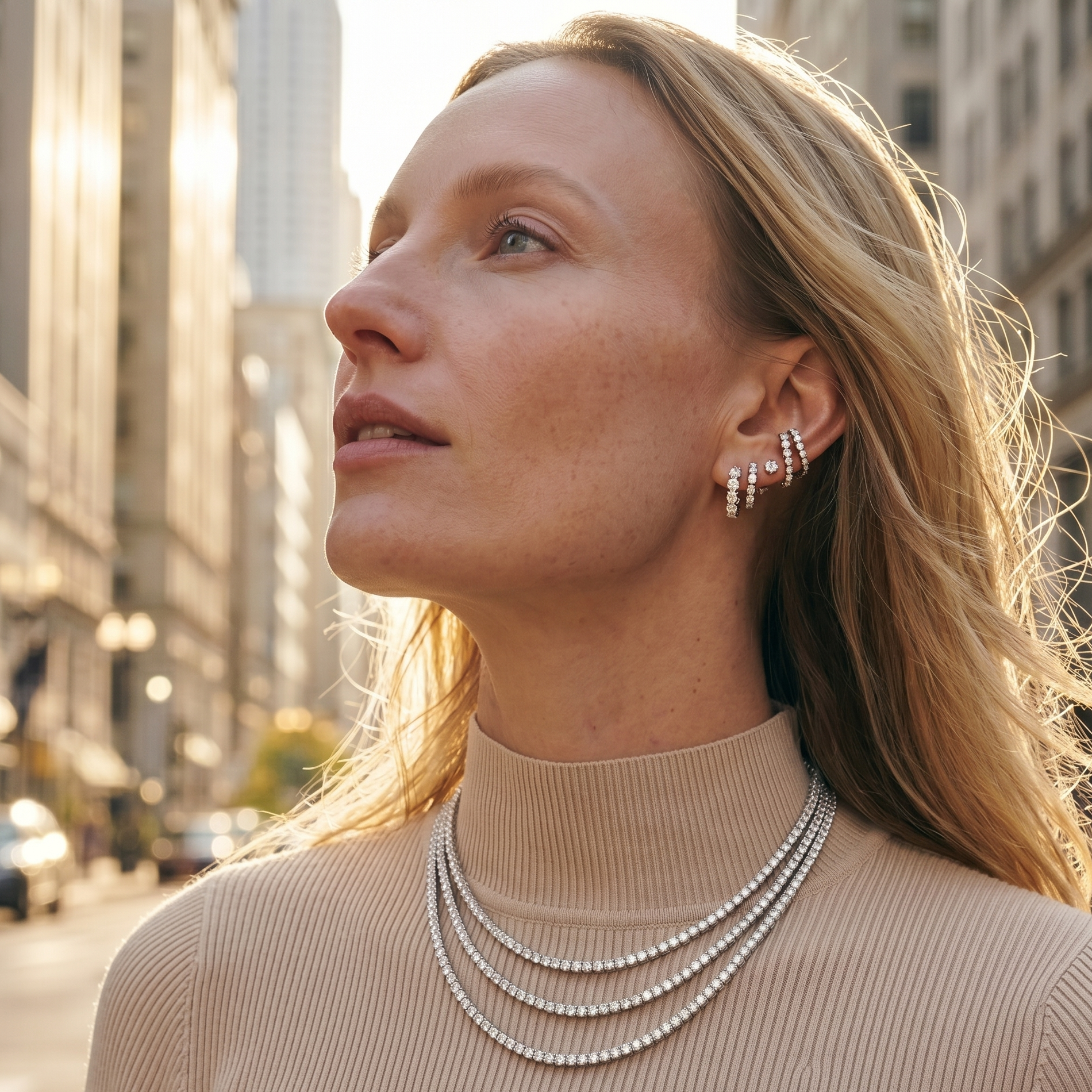 We use lab-grown diamonds and recycled metals to reduce environmental impact.